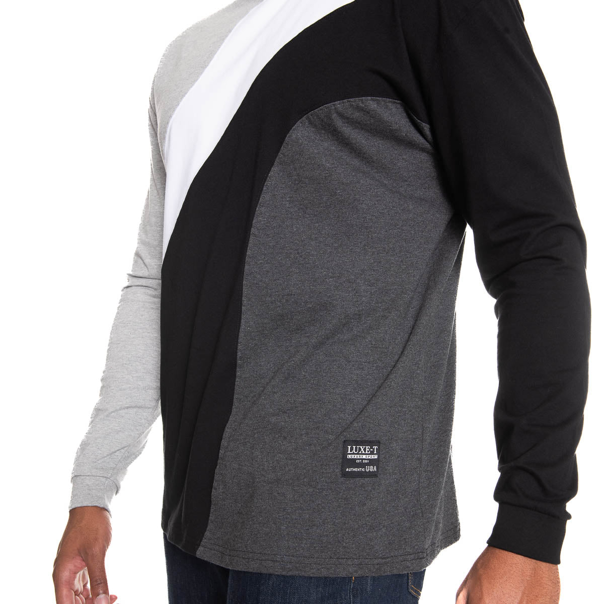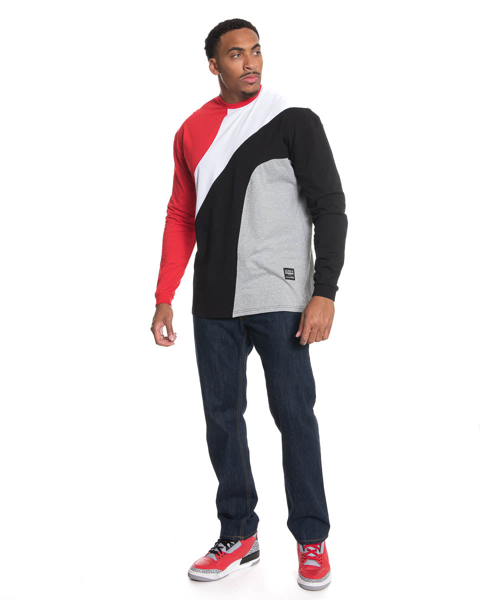 Heavy Weight Classic Fit Crew Neck Long Sleeve T-Shirt with flowy color block details.