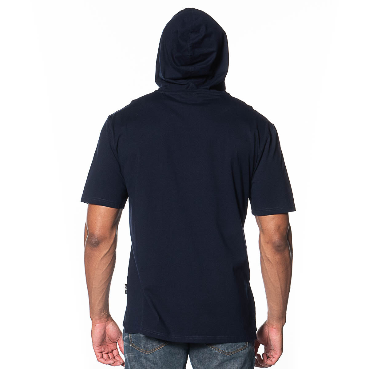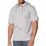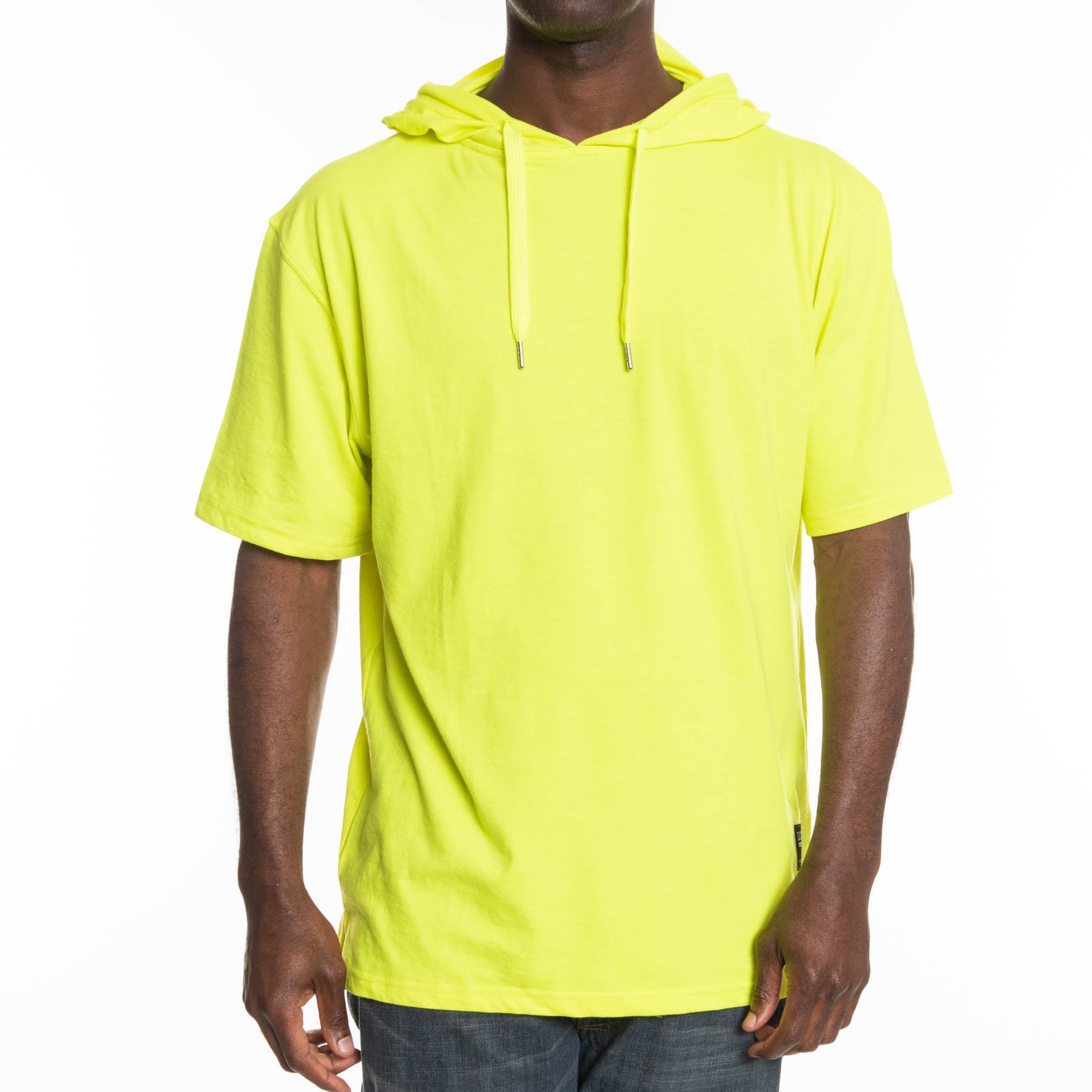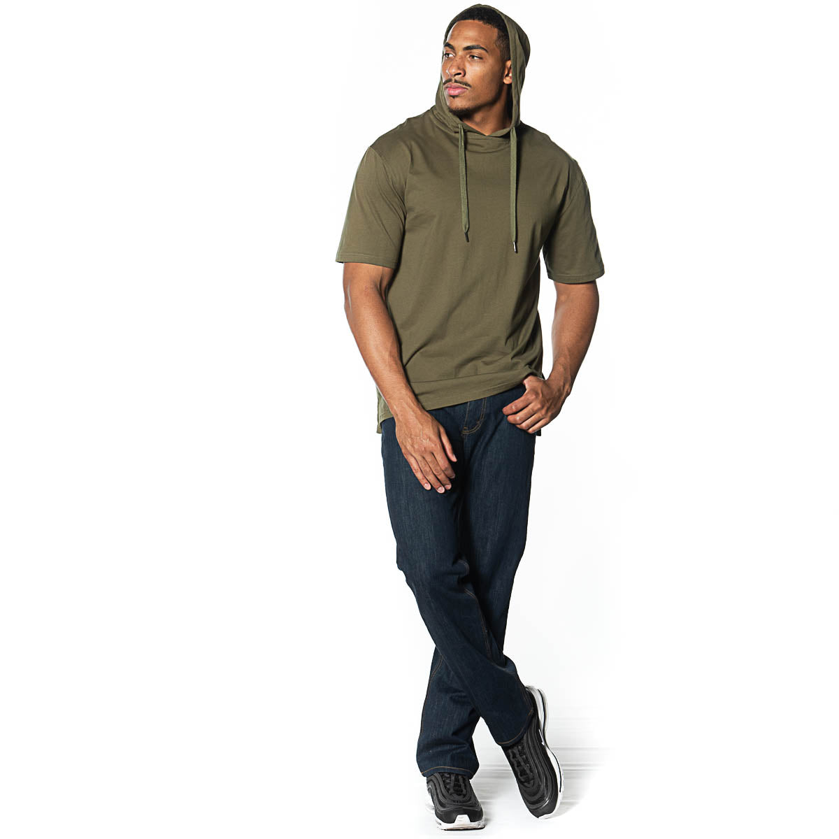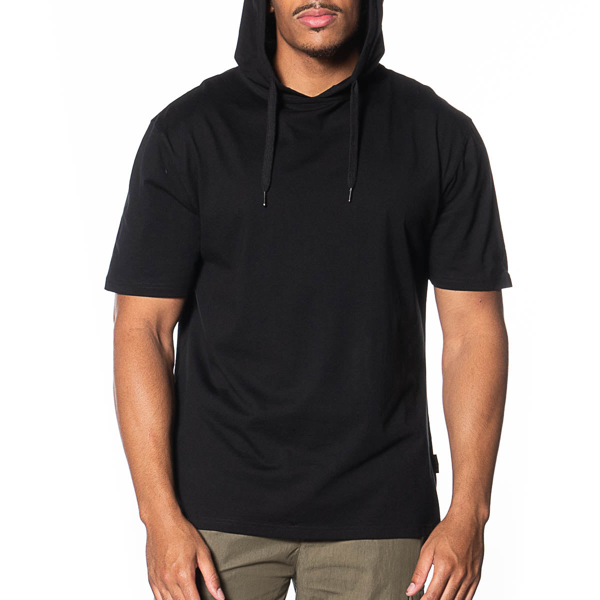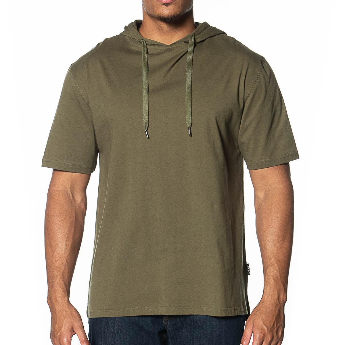 Heavy Weight Classic Fit Short Sleeve Hooded Tee featuring logo gunmetal drawstrings and side slit.